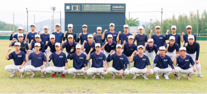 野球部は県大会ベスト8や、センバツ高校野球21世紀枠推薦などの実績を残し、県内外から注目されるチームです。寮生活を通して、毎日ともに過ごす中で築いてきた最高のチームワークで「ただひたむきに」練習に取り組んでいます。目標は野球部創立以来初の甲子園出場!目標達成のために日々精進しています。